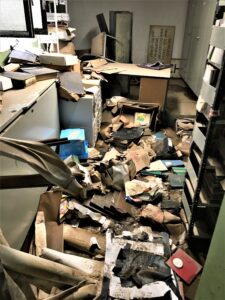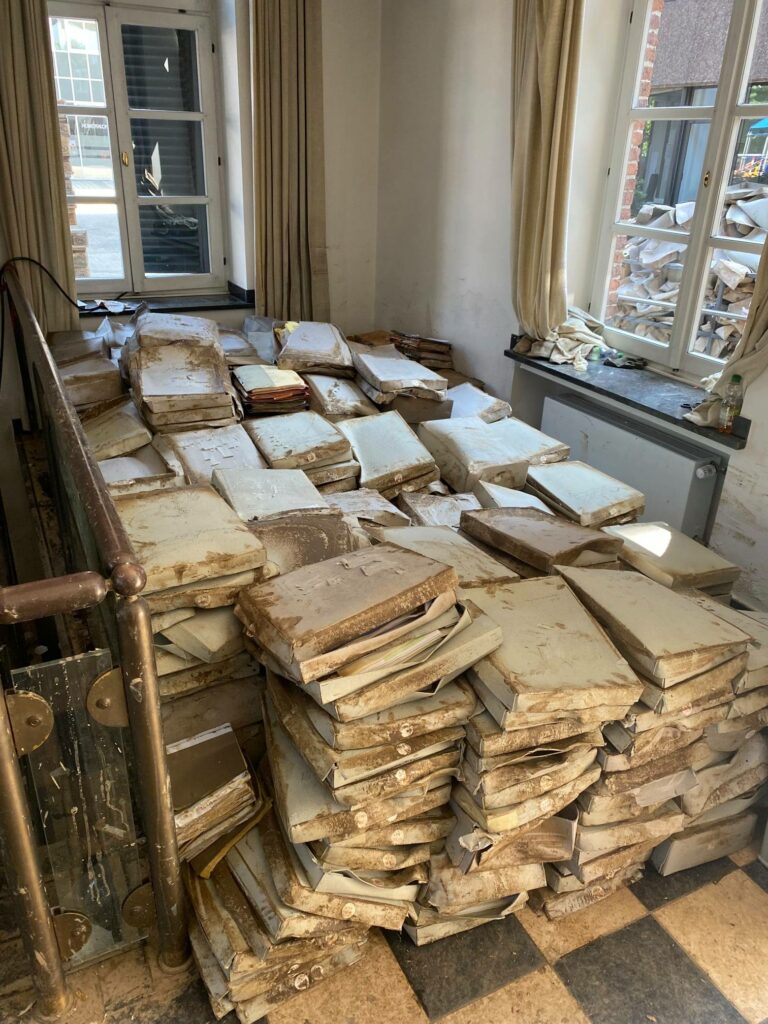 Auf Initiative der Kölner Feuerwehr hat der Notfallverbund Kölner Archive und Bibliotheken wenige Tage nach der Flutkatastrophe bereits in Stolberg geholfen. Eine erste Sichtung der Lage vor Ort fand bereits am Samstag, dem 17. Juli 2021 statt. Montags darauf wurde unser Abrollcontainer nach Stolberg gebracht.