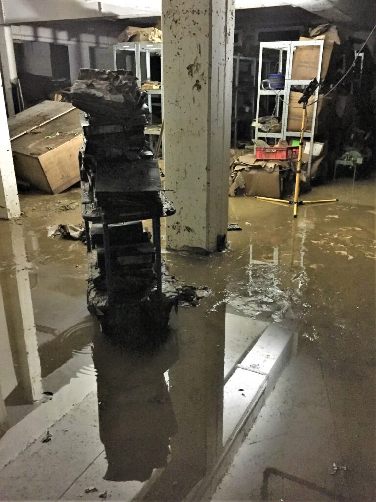 Angeliefert wurden neben Flachware wie Bildern und Fotos auch hölzerne Gegenstände, museale Artefakte aus Keramik, Glas und Textilien, die aus einem Depot in einer Tiefgarage gerettet worden waren. Die Bilder wurden weitestgehend von einem Team der Technischen Hochschule versorgt, Artefakte die wir in Köln nicht versorgen konnten, wurden an entsprechende Stellen weitergeleitet anderes, wie in mittlerweile bewährter Weise erprobt, konnte versorgt werden.