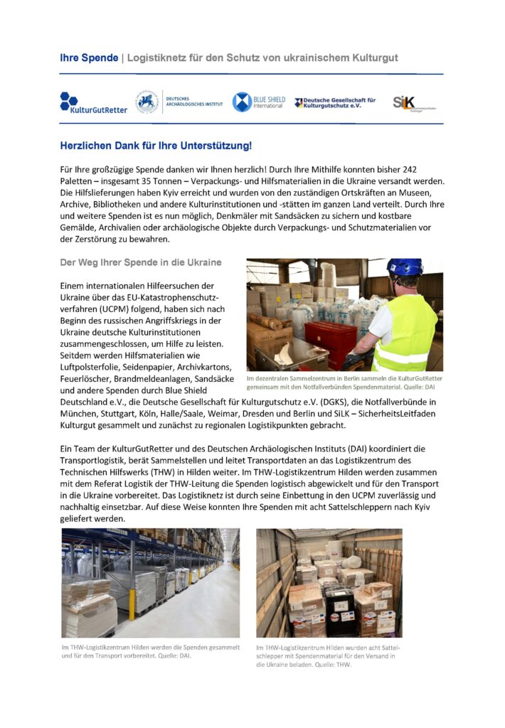 22.06.2022 // idw-online.de // „Große Hilfslieferung zum Schutz von Kulturgut an Ukraine versendet“