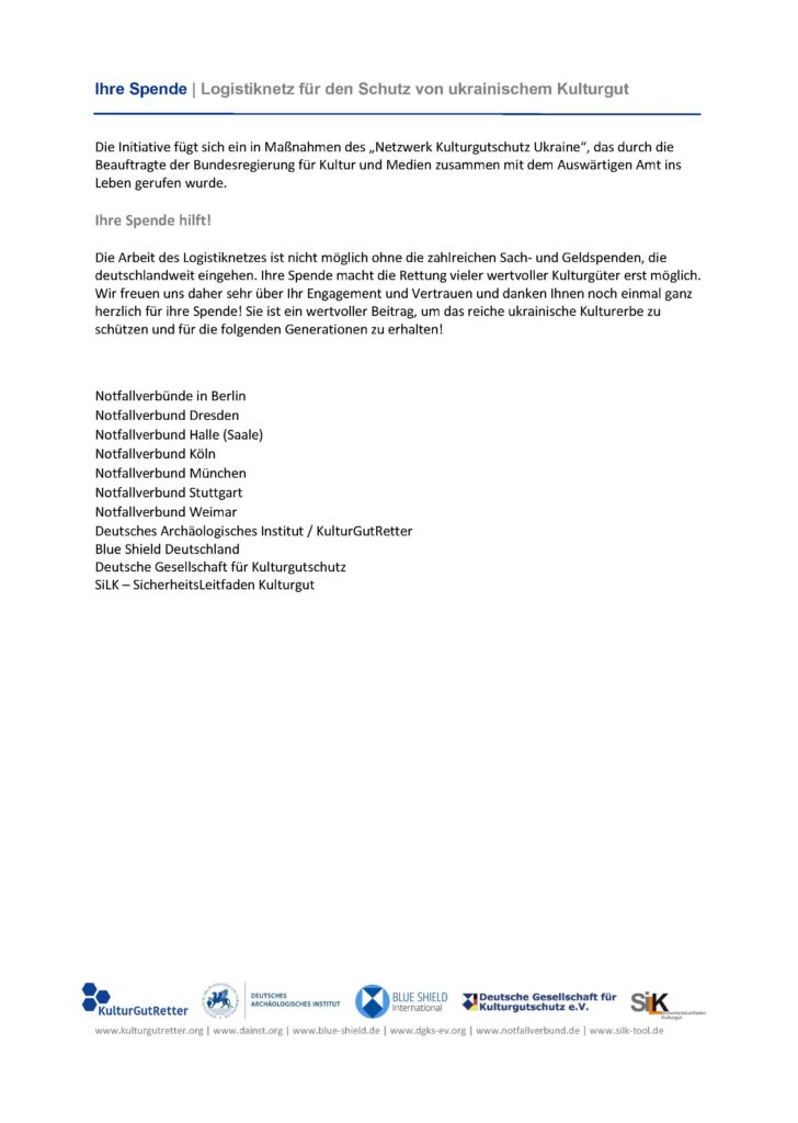 Wenn Sie Verpackungsmaterial zu Kulturgutschutz in der Ukraine spenden möchten, unterstützen wir Sie gerne!